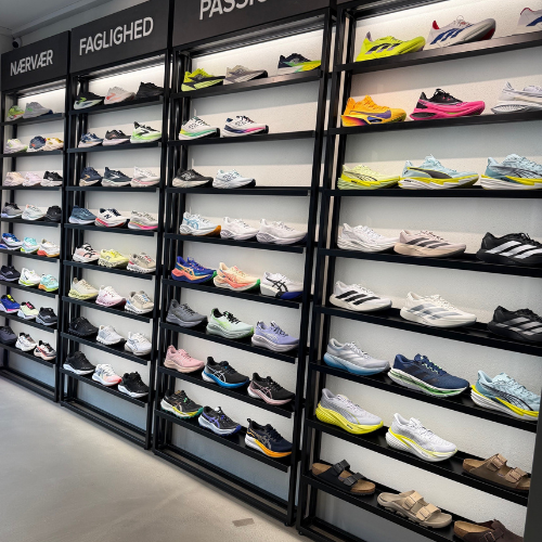 I vores butiksmiljøer har vi specialiseret os i at rådgive om løbesko, vandresko og funktionelle hverdagssko. Uanset om du er nybegynder i løbesko, en erfaren motionist eller leder efter det perfekte par sko til dagligdagen og vandreturen, så har vi et bredt sortiment af sko, løbetøj og udstyr, der er sammensat til at imødekomme dine behov.
